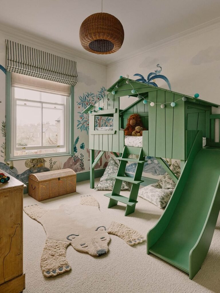 Para quartos infantis, é possível misturar tons suaves com pequenos toques de cores mais alegres em detalhes, como nichos, portas ou meia parede.